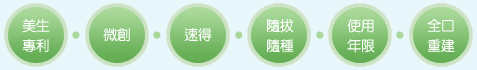 ● 使用年限:耐用、好清潔、美觀舒適又健康,使用壽命比假牙長,是一勞永逸的解決方法。