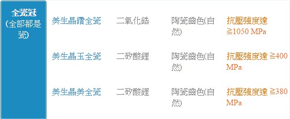 美生晶鑽全瓷 美生晶玉全瓷 美生晶美全瓷